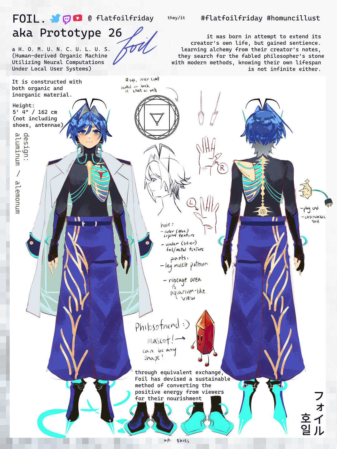 Aluminum is a Korean American artist currently based on the East Coast. They create original character designs, avatars, as well as digital illustrations of the various original characters they examine themself through. Aluminum primarily works with Clip Studio Paint, Live2D, Adobe Creative Suite (including but not limited to: InDesign, Photoshop, Animate, Premiere, and After Effects) and their trusty Huion Kamvas Pro 13. They are fascinated by character-driven narratives and aspire to create stories with characters audiences can connect with. Some of their favorite stories come from media such as "Train to Busan", "Fullmetal Alchemist: Brotherhood", "Arknights", "Honkai: Star Rail", "The Amazing Digital Circus", and others. Aluminum studied Creative Technologies at Virginia Tech and graduated in May 2024.